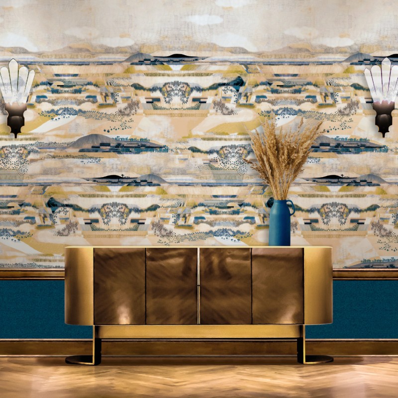 Panoramic non-woven wallpaper sold in roll of 19.7 x 393.7 inch (50cm x 10m).
